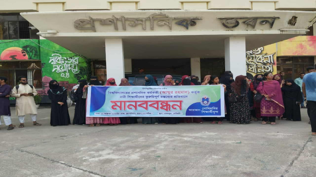 মানববন্ধনে ছাত্রীরা উক্ত কর্মকর্তা মোহাম্মদ রহমানকে প্রকাশ্যে তাঁর মন্তব্যের জন্য নিঃশর্ত ক্ষমা প্রার্থনা করা, বিশ্ববিদ্যালয় প্রশাসনের পক্ষ থেকে ঘটনাটির বিরুদ্ধে অবিলম্বে প্রশাসনিক তদন্ত ও প্রয়োজনীয় আইনি ব্যবস্থা গ্রহণ করা এবং নারী শিক্ষার্থীদের সম্মানহানি ও নৈতিক হয়রানির দায়ে তাঁর বিরুদ্ধে যথোপযুক্ত শাস্তি হিসাবে অবিলম্বে উক্ত কর্মকর্তাকে বহিস্কারের দাবি জানান।