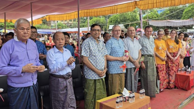 শুক্রবার বিকাল ৫টায় ঐতিহাসিক রাজারমাঠে ইউরোপীয় ইউনিয়নের (ইইউ) অ্যাম্বাসেডর মাইকেল মিলার, ইতালিয়ান অ্যাম্বাসেডর মিঃ আন্তোনিও আলেসান্দ্রো, নেদারল্যন্ডে দূতাবাসের প্রতিনিধি মিঃ আন্দ্রে কার্স্টেন্স, জেলা প্রশাসক শামীম আরা রিনি, সেনা জোন কমান্ডার মাহামুদুল হাসান, পুলিশ সুপার শহিদুল্লাহ কাওছারসহ বিভিন্ন পর্যায়ের কর্মকর্তাবৃন্দ মৈত্রী পানি বর্ষণ অনুষ্ঠানে যোগদেন।
