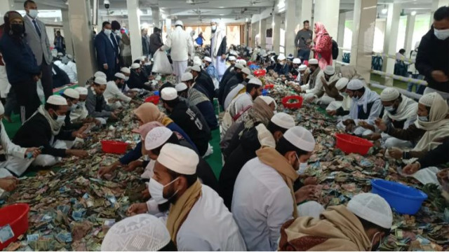 এর আগে সকাল ৭টায় দানবাক্সগুলো খোলা হয়। পরে সকাল ৯টার দিকে সেগুলো মসজিদের দোতলায় গণনার জন্য নেওয়া হয়। প্রায় ১১ ঘণ্টা ধরে ৫০০ জনের একটি দল এ অর্থ গণনার কাজ সম্পন্ন করেন।