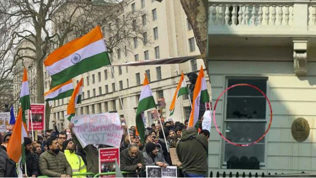 আগের দিন ভারতীয়রা হাইকমিশনের বাইরে সহিংস বিক্ষোভ প্রদর্শন করে। একদিন পর এই হামলা চালানো হয়।