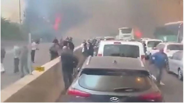 প্রতিবেদনে বলা হয়েছে, এরমধ্যে ইসরাইলি বাণিজ্যিক রাজধানী তেলআবিব থেকে জেরুজালেম যাওয়া রুট-১ মহাসড়কে ছড়িয়েছে আগুন। এতে সড়কে চলা বেশ কিছু গাড়ি আটকে পড়ে। সামাজিক যোগাযোগমাধ্যমে এমন বেশ কয়েকটি ভিডিও এখন ঘুরপাক খাচ্ছে।