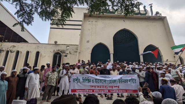 শুক্রবার বাদ জুমা বায়তুল মোকাররমের উত্তর গেটে জাতীয় বিপ্লবী পরিষদের আয়োজনে এক বিক্ষোভ সমাবেশ অনুষ্ঠিত হয়। বিক্ষোভ থেকে মুসলমানদের নির্যাতন নিপীড়ন থেকে রক্ষায় ভারত নিয়ন্ত্রিত কাশ্মীর, ফিলিস্তিন ও আরাকানের স্বাধীনতার দাবি জানানো হয়।