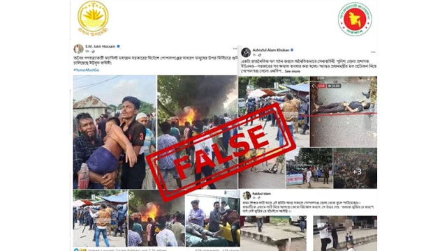 আরেকটি বহুল প্রচারিত পোস্টে দেখা যায়, জাকির হোসেন এবং আশরাফুল আলম খোকন একটি ছবি পোস্ট করেন, যেখানে গোয়েন্দা শাখার (ডিবি) এক কর্মকর্তা বিক্ষোভকারীদের দিকে গুলি ছুড়ছেন।
