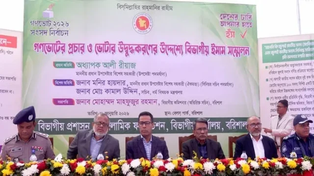 দেশজুড়ে গণভোটের প্রচার কার্যক্রমের অংশ হিসেবে রোববার (১১ জানুয়ারি) বরিশালের বেলস পার্কে বিভাগীয় প্রশাসন ও ইসলামিক ফাউন্ডেশন আয়োজিত বিভাগীয় ইমাম সম্মেলনে প্রধান অতিথির বক্তৃতায় তিনি এ কথা জানান।