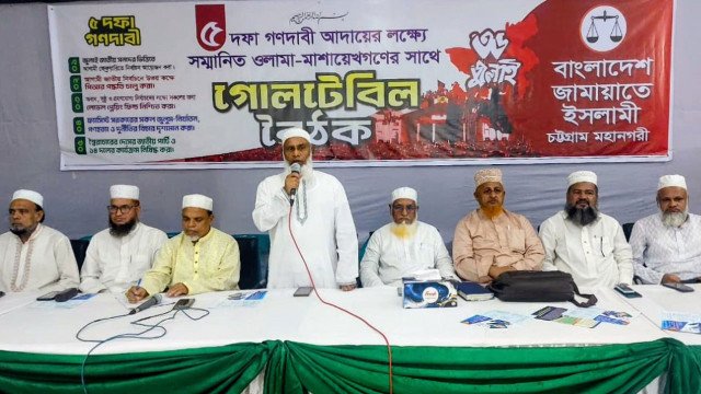 শুক্রবার (৩ অক্টোবর) চট্টগ্রাম জামায়াতের কার্যালয়ে ৫ দফা দাবি আদায়ের লক্ষ্যে ওলামা-মাশায়েখদের সঙ্গে মতবিনিময় সভায় সভাপতির বক্তেব্যে তিনি এসব কথা বলেন।